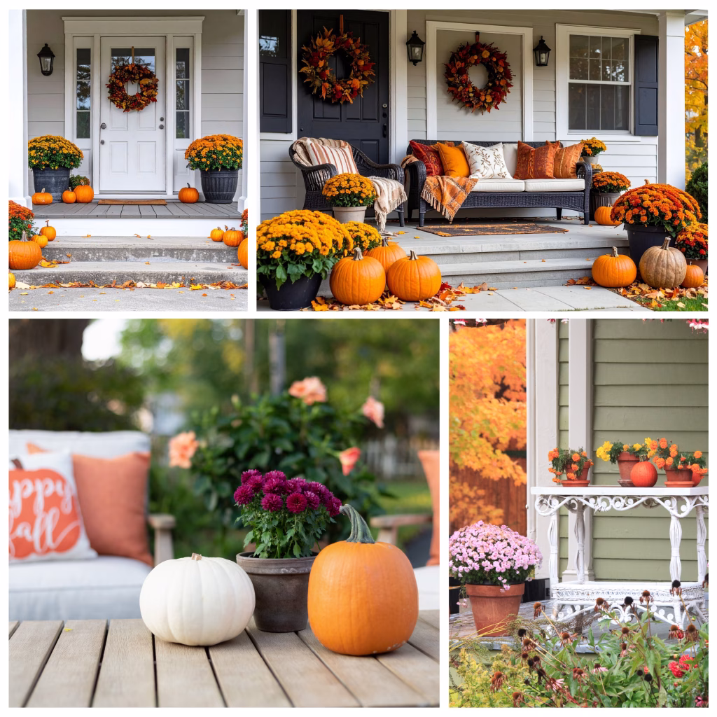 Fall is also a great time to decorate your outdoor spaces. Think natural and cozy: pumpkins, gourds, and colorful mums add instant autumn charm. Warm up your porch or patio with lanterns or string lights and use throws and pillows to make your outdoor seating areas more inviting.